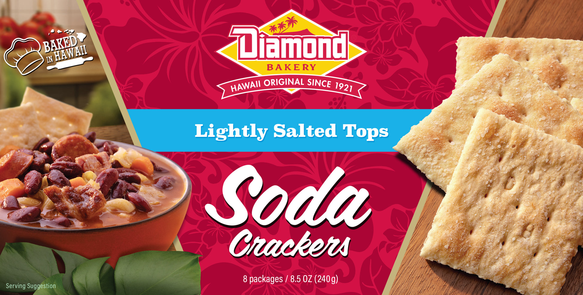 ダイヤモンドベーカリー定番のソーダクラッカーに軽く塩をふりかけました。味はオリジナルと全く変わりません。269グラムのトレー入り。