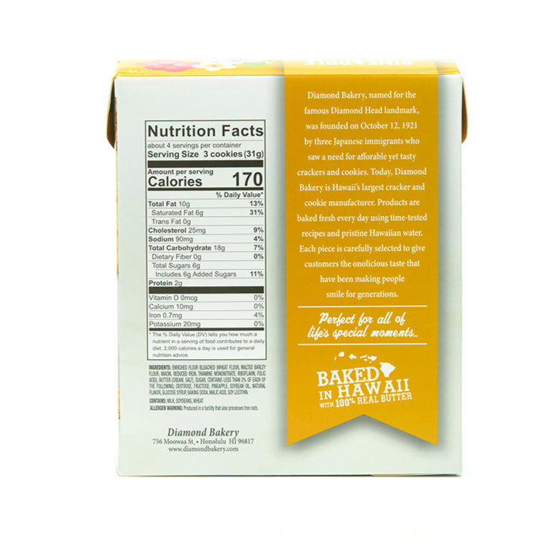 Try our brand new Diamond Bakery Hawaiian Shortbread Cookies line which were Made 100% In Hawaii. A taste that truly defines decadence. All our shortbread cookies are baked with simple, yet delectable ingredients that are sure to satisfy any taste buds, now available in Pineapple flavor!